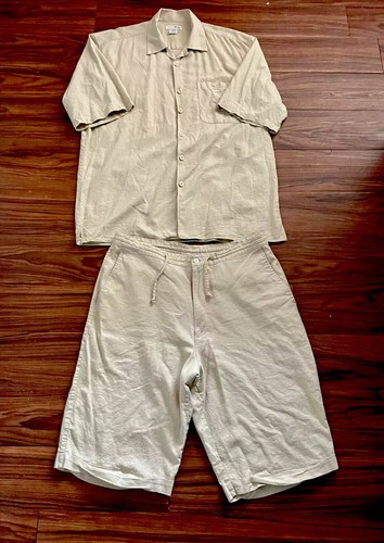 Trust Usa Mens 2 Piece Linen Shorts Outfit Button Front Khaki Beige 2xl 40 42 Ebay